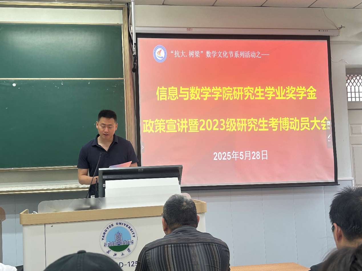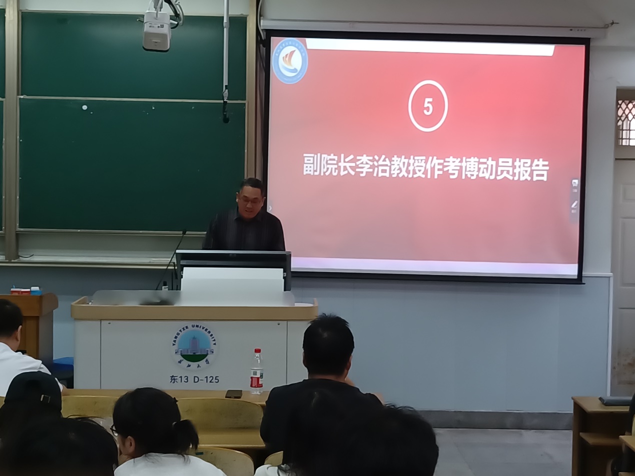 最后,副院长李治教授进行考博动员,他表示学院将持续为研究生搭建学术交流平台,提供个性化指导,助力同学们实现深造梦想。他号召全体研究生以此次动员大会为契机,科学规划未来,努力提升自身实力,为学院和学校的发展贡献力量。