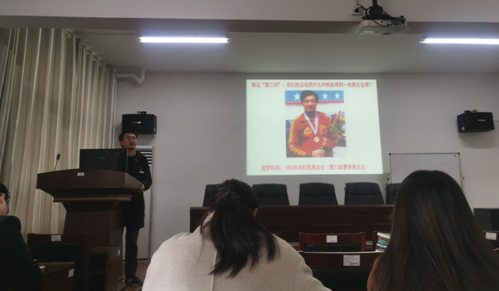 宣讲会上,主讲人谷祥坤同学以“奥运三问”—“中国何时能派运动员参加奥运会?”、“中国何时能获奥运会金牌?”、“中国何时才能举办奥运会?”为线索,讲述了中国艰难曲折的发展历程,其中提到1932年中国人首次参加的奥运会洛杉矶奥运会,1984年洛杉矶奥运会上中国运动员许海峰夺得了中国奥运史上的第一块金牌,中国曾经举办的2008年北京奥运会、2014年夏奥运会、2016年青奥会、世界军运会以及冬奥会等,目前中国已是世界上举办过国际大型奥运会最多的国家。宣讲会接近尾声,谷祥坤同学借中国女排精神激励365英国官网研究生要不忘初心、努力奋斗,共同喊出为中华崛起而拼搏的最强音。