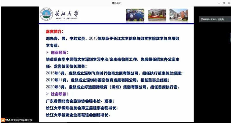 (通讯员 丁伟怡 代雅诗)为发挥优秀校友的榜样示范作用,增强365英国上市公司官网学生对于就业的了解,我院特于6月6日下午2:30召开了“线上优秀校友报告会”。参与此次会议的有院党委副书记袁海山,团委书记严星,大三、大四全体学生,特邀数学与应用数学专业09级校友邓先青为同学们分享就业经验。本次会议由袁海山书记主持。