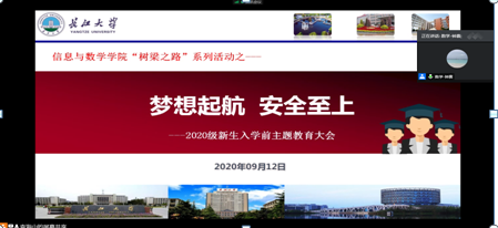 (通讯员 丁伟怡)“疫”路逐梦,情牵学子。为确保2020级新生入学工作有序开展,帮助新生提前熟悉线下报到流程,学习疫情防控要求,增强安全意识。365英国官网特于9月12日下午3时召开“梦想启航 安全至上”新生入学前主题教育线上会议。院党委副书记袁海山、辅导员钟赛、2020级全体新生参加本次会议。会议由钟赛老师主持。