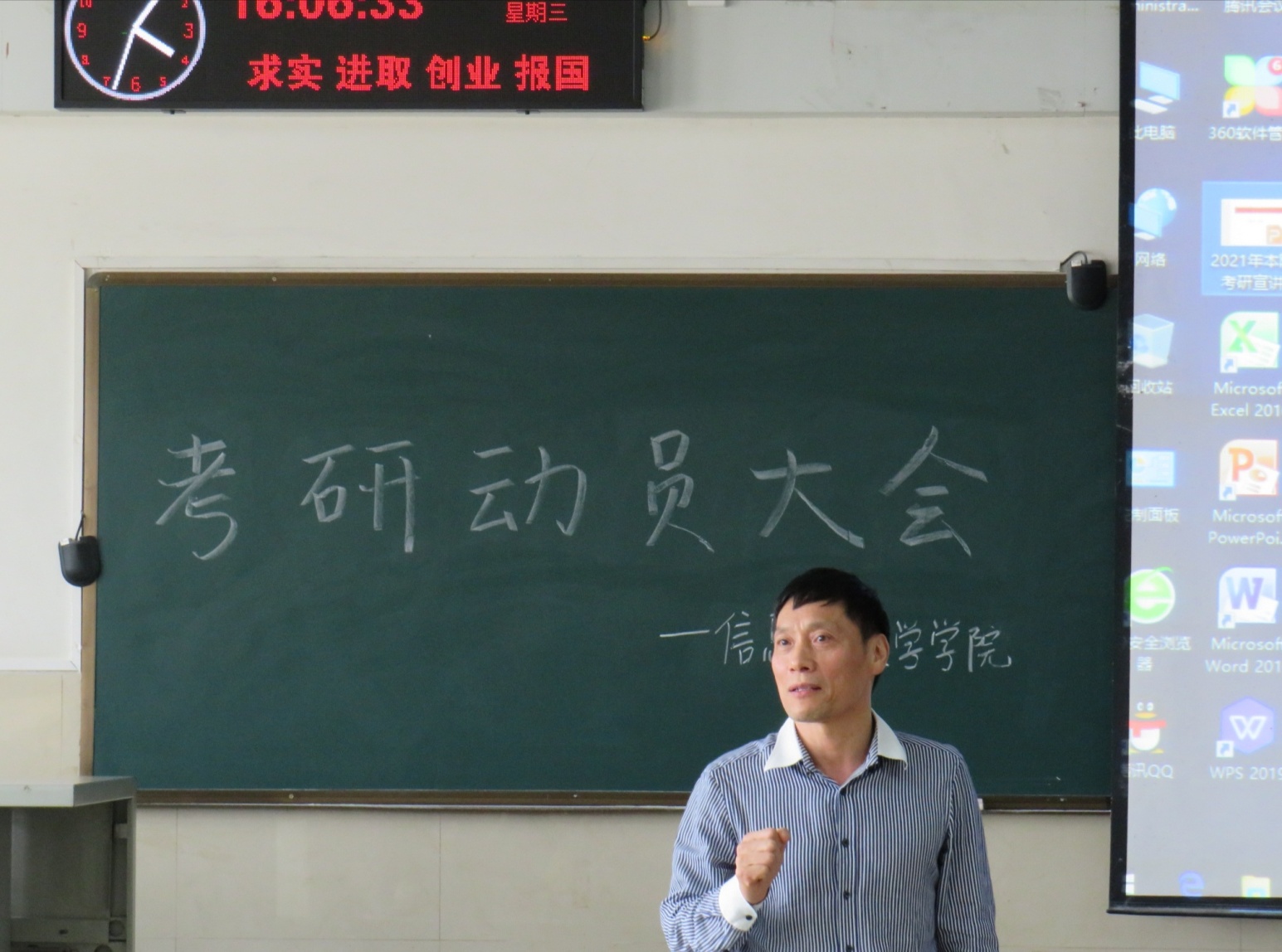 会中,高迎斌发表讲话,他提到考研能再次证明自己的实力,能有机会去往985,211高校。此外,由于疫情缘故,本科生就业情况势必会受到影响,而考取研究生学位能增大就业机率,获取更好的职位。另一方面,“与优秀的人在一起能让自己变得更优秀”。考研可以结识导师,认识更优秀的同学,让自己变优秀,也能扩展自己的人脉,为以后的就业打下基础,提供保障。高书记强调:坚持就是胜利,告诫同学们不到最后不要轻言放弃,要坚信“天生我才必有用”,增强自己的自信心。