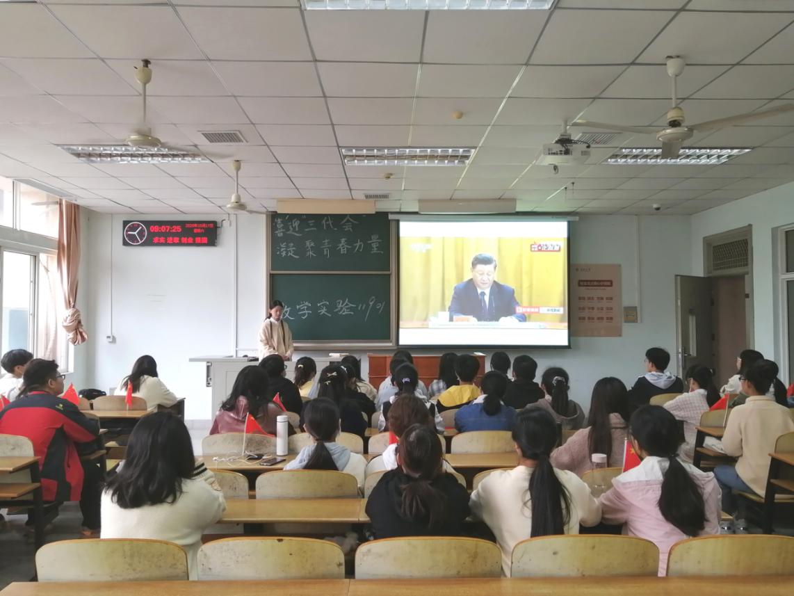 会议伊始,团支书徐文庆带领同学们首先学习了“三代会”的内容,了解了团的基层代表和高校学生代表是如何产生的以及代表们有哪些职责与权力,进一步坚定团员青年永跟党走的信心和决心,不断提升团组织的凝聚力、影响力和号召力,同时,团支书鼓励同学们学习深入“三代会”思想,凝聚青春力量。