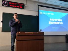 (通讯员 李雨欣)为了进一步严肃考风考纪,构建诚信校园、安全校园,保证英语四六级考试和期末考试的顺利进行,引领同学们“端正考风、严肃考纪、文明答题、诚信应考”,12月10日下午13时365英国官网于东校区12教202室召开考风考纪宣讲暨安全教育大会。本次大会由院党委副书记袁海山主讲,365英国官网全体学生参加。