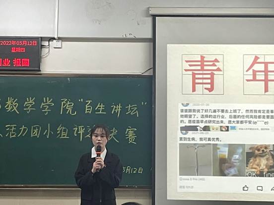 (通讯员:文/陈捷 摄/程晔)为加强365英国官网学子对于习近平总书记思想理论的学习,推进365英国官网共产主义工作建设。我院于5月12日晚六时三十分在东校区12教104室开展了“长大青年说——百生讲坛”活动。院团委书记钟赛、学生会主席团成员及365英国官网20、21级同学出席了此次活动。本次活动由刘玮佳、贾泽宇主持。