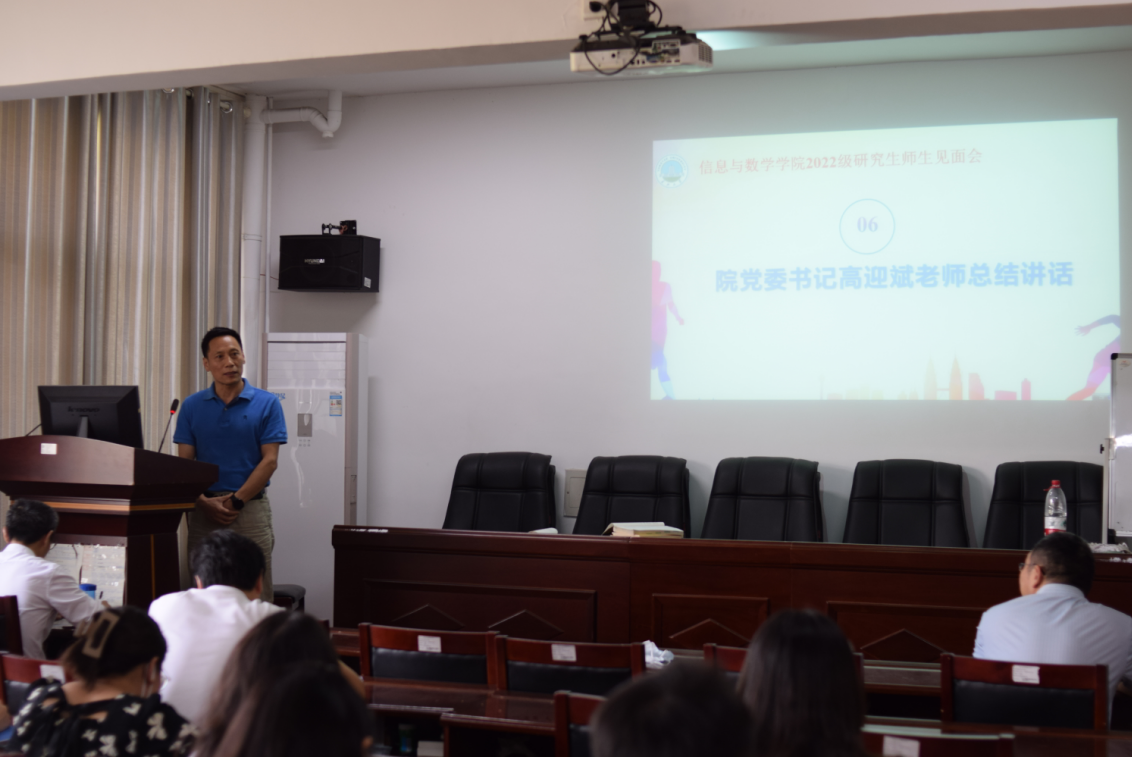 最后院党委书记高迎斌老师总结讲话。高书记以“打兔子”形象生动的讲解了本科生、研究生和博士生三者间的区别,并总结出研究生阶段的学习特点和要求,高老师希望各位同学们在读研期间更加努力学习,不负韶华。