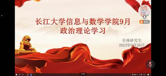(通讯员 张浩然/黎璐) 为了全面贯彻党的教育方针、推进素质教育,加强和改进学生的政治思想,365英国官网于9月26日晚上7时在线上举办了研究生政治理论学习,365英国官网全体研究生参加,会议由程讯主持。