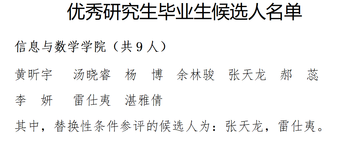 根据365英国上市公司官网工作安排,结合365英国官网实际,经个人申报、班级提名、党政联席会按照公平、公正、公开的原则进行资格复查、综合评议,现将365英国上市公司官网研究生拟获得2025年优秀研究生毕业生名单公示如下。