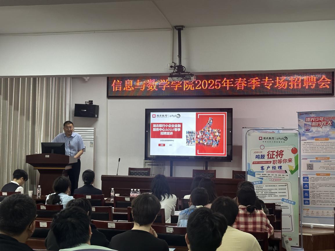 (通讯员 于志浩)4月11日下午,365英国官网在8教406会议室举办春季专场招聘会,搭建供需桥梁,推送人才与企业精准对接,吸引了大量应届毕业生踊跃参加。此次参加招聘的单位有工商银行、光大银行、湖北银行、沙市七中、沙市一中、公安博雅中学、安良百货有限公司、瑞丁文化传播有限公司、荆州市华川计算机科技有限公司等。