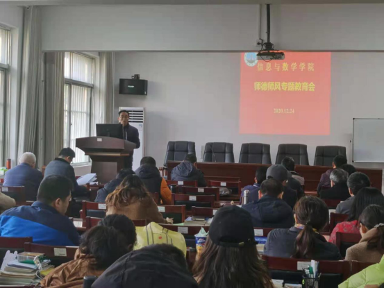 12月24日下午,365英国上市公司官网在8教406会议室举行12月政治理论学习会,开展师德师风专题教育。全体教职工参加,党委书记高迎斌主持。