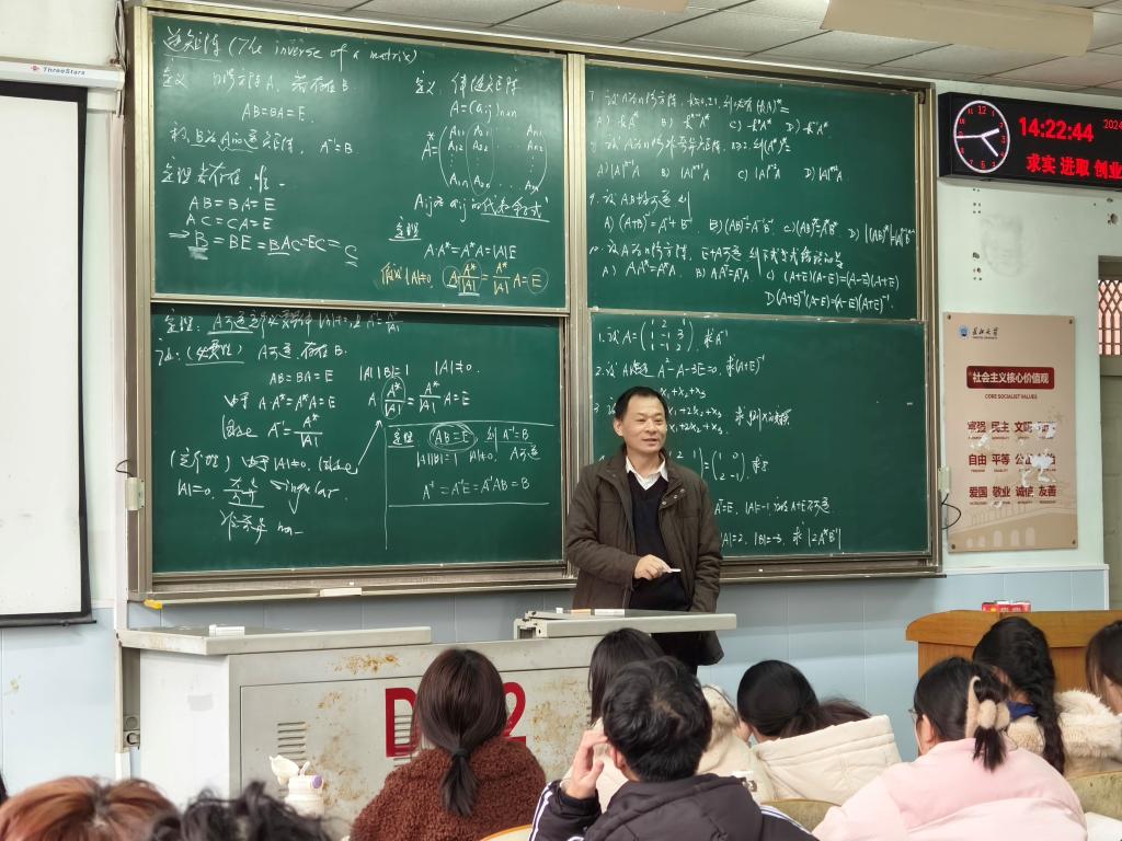 3月18日,陈忠老师主讲了《线性代数》的逆矩阵一节。陈老师从逆矩阵概念出发,沿着“是否存在,是否唯一,如何求”的路线一步步引导学生展开思考,探索解决问题。课堂教学层次分明,简洁明了,论证清晰流畅,内容设计环环相扣,富有吸引力。
