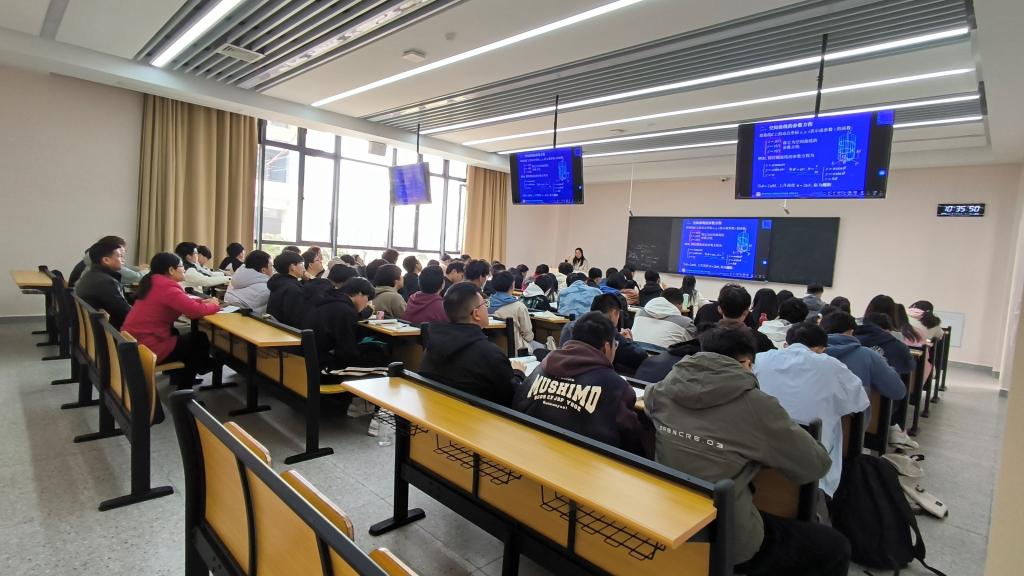 3月12日,胡洁老师主讲课程《高等数学A(下)》,利用雨课堂进行线上线下同步教学,讲授了空间曲线的参数方程部分,更多地从教学设计、教学过程向青年教师展现最新的教学方法。