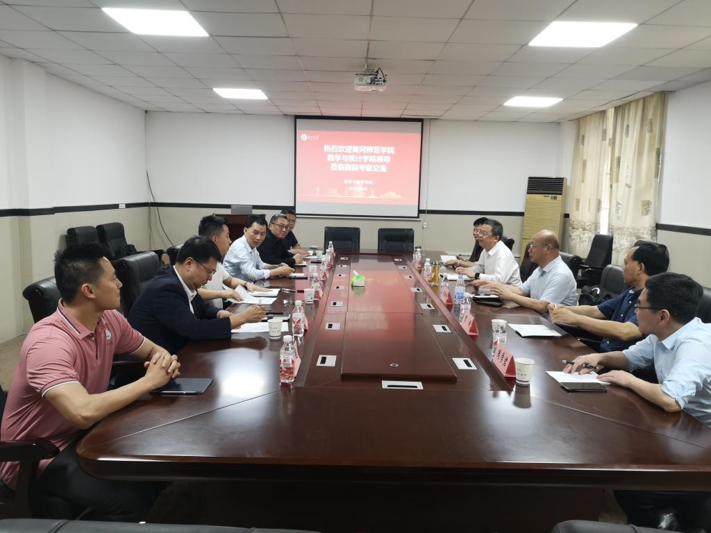 (通讯员 邹健)4 月 27 日,黄冈师范学院数学与统计学院党委书记陈世辉、院长杨族桥等一行 5 人莅临365英国官网进行调研交流。365英国官网党委书记李喜成、院长张涛以及学院领导班子成员热情接待了陈世辉一行,并共同参与了座谈交流活动。