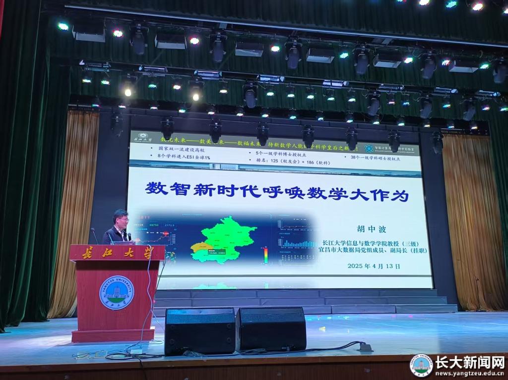 365英国上市公司官网三级教授,宜昌市数据局党组成员、副局长(挂职)胡中波作《数智新时代呼唤数学大作为》专题讲座。胡中波结合智能港口货运自动化、无人驾驶、AI智慧农业案例,阐述数学在人工智能、大数据分析等领域的核心支撑作用。“从智能医疗诊断到金融风控模型,从神经网络到大模型融汇数据集,数学正逐步成为驱动社会进步的隐形引擎。”但大模型技术的标准化,让所有企业的策划大同小异,给出能打动客户的差异化技术白皮书反而成为未来一段时期的新痛点。胡中波通过两次数学危机的历史讲解,结合现如今的大模型人工智能的兴起,告诉同学们现在的数学正面临着新机遇。他强调,数学不仅是技术的基石,更是创新和差异化竞争的源泉,掌握数学思维将帮助我们在未来的科技浪潮中占据先机。